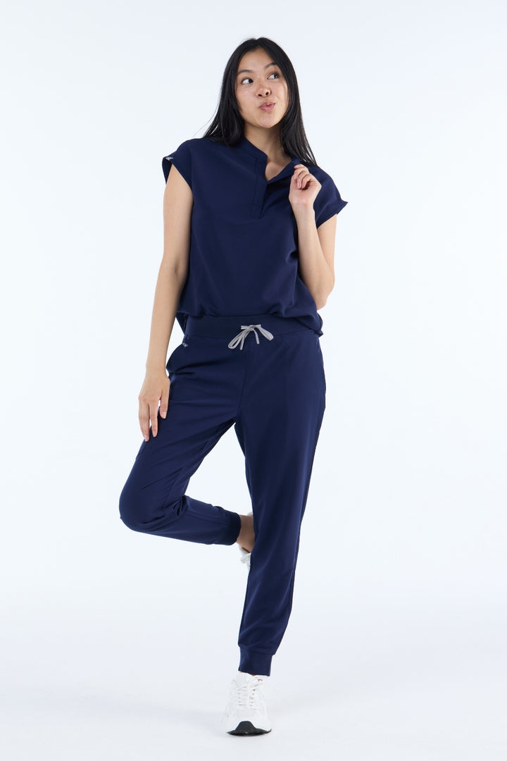 Featuring a modern mandarin neckline and an oversized-yet-tailored fit, our latest top style pairs effortlessly with all pant styles, Lounge, Jogger and Straight Leg.